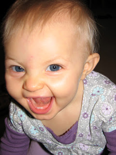 6) Karlena (who I don't have any recent pics of - after tonight I promise!) finally got her 2nd top tooth. She also took 3 steps before falling down a few days ago. She can stand alone without holding anything for a pretty long time now...so any day she will be walking everywhere!